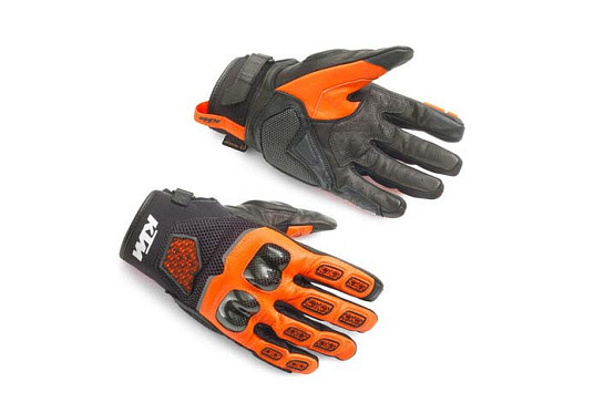 Sportovní rukavice značky KTM pro jízdu na silnici.