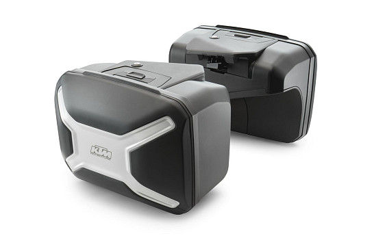 Sestava kufrů pro převoz nákladu na motocyklu.